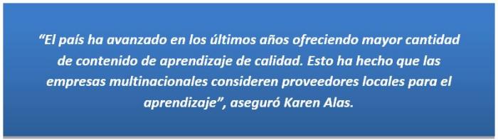 Añadió que “El país ha avanzado en los últimos años ofreciendo mayor cantidad de contenido de aprendizaje de calidad. Esto ha hecho que las empresas multinacionales consideren proveedores locales para el aprendizaje. Gracias a la relación empresa-aprendizaje los proveedores de contenido han logrado ofrecer programas adhoc a las necesidades de las empresas, e incluso adaptar sus temarios a la realidad específica de cada organización.