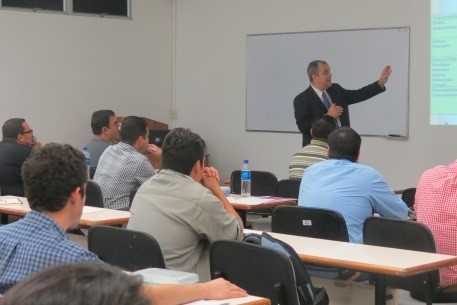 Ing. Wilson Herrera, catedrático de Seminario Gerencial II de la MAE, y Administrador del software CAPSIM. (Foto: Ricardo Larín)