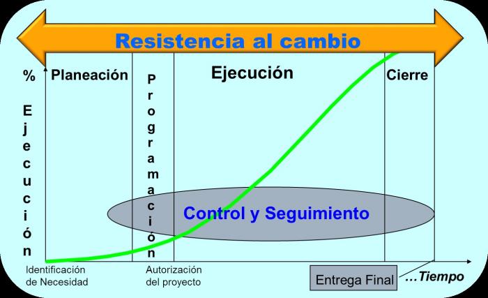 Para quienes hemos “trabajado en proyectos” sabemos de los inconvenientes que produce la resistencia al cambio, especialmente en aquellos que impactan drásticamente la forma de hacer el trabajo o modifican las “cajitas del organigrama”, así como aquellos cuya amplitud durante su desarrollo e implantación demandan de la participación de muchas personas tanto dentro como fuera de la organización ejecutante, o porque depende de muchos factores externos ajenos al control del equipo de trabajo del proyecto.