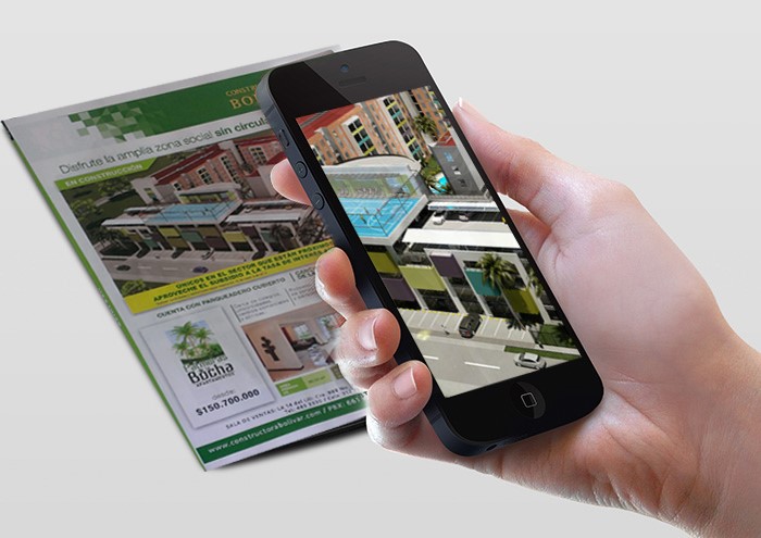 Imagine que abre una revista o un brochure en una pauta publicitaria y ve el logotipo de la constructora o del proyecto con un texto que le dice que apunte la cámara de su dispositivo móvil o tableta al logo impreso, y cuando usted lo hace se levanta el edificio sobre el logotipo y podrá tener el modelo 3D del futuro proyecto como si ya estuviera construido.
