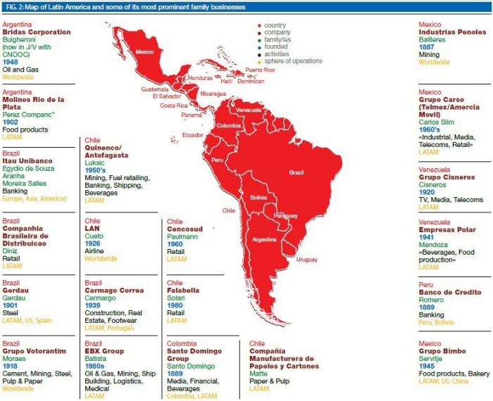 Imagen 2. Mapa de Latinoamérica y algunas de sus más prominentes empresas familiares. (http://www.iadef.org/2013/08/12/el-descubrimiento-de-america-latina-y-sus-empresas-familiares/)