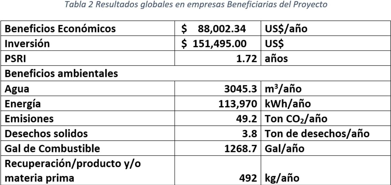El proyecto en su totalidad podrá generar beneficios económicos en las 6 empresas por aproximadamente 88,002 US$/año, en cuanto a la inversión a realizar para reconvertir ambientalmente los procesos y servicios se requieren aproximadamente US$ 151,495 por lo que su recuperación de inversión sería antes del segundo año.